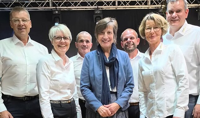 Präsentation unserer neuen Fraktionsblusen/-hemden bei der Modenschau des Lagerhauses in Roggendorf.